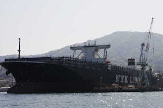 近くで当地と本土を結ぶ早瀬大橋にも船が往来。