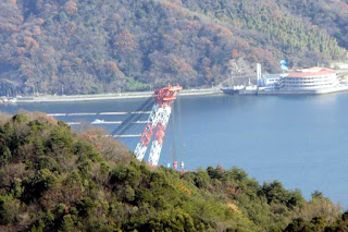 古鷹山の中腹から起重機船の船影が見えました。