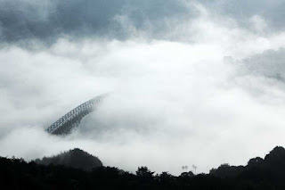 今朝は、早朝から能美島と倉橋島の間にある早瀬大橋(全長623.5メートル)も霧の中にスッポリ。
