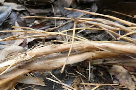 一見すると、縄のようですが、竹の芽が出た場所にタイヤがあったため、それに沿って成長していました。わらと竹も、同じイネ科でした。